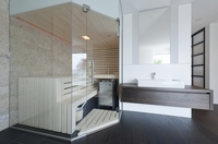 Designsauna mit Glaselementen aus dem Hause Sauna und mehr... GmbH www.sauna-und-mehr.comWohlige Wärme umgibt den Körper. Ein angenehmer Holzduft liegt in…