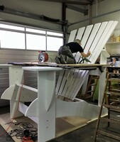Riesiger Adirondack-Chair in Heiligenhafen (Beach Motel) Finale Arbeiten vor dem Transport an´s Meer ...Heiligenhafen, 12.01.2017 - "Ein schöner weisser Riese!",…