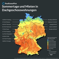 Wo in deutschen Städten mit den meisten Sommertagen die höchsten Mieten für Dachgeschosswohnungen fällig werden Karte_Sommertage_Mietpreise(Leipzig, 11. Juli 2023) Mit…