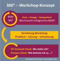360° - Workshop-KonzeptBGM-Praxis und Theorie vereint! Nutzen Sie das 360° - Workshop-Konzept Namhafte Experten und Praktiker wie "Food at Work",…