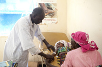 (Mynewsdesk) Bild: Ein kleines Mädchen in Takorka (ca. 200 km südöstlich von Tahoua) Niger, bekommt fiebersenkende Mittel gegen Malaria in…