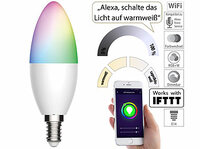 Die Lichtfarbe per App und Sprachbefehl steuern Luminea Home Control WLAN-LED-Lampe LAV-155.rgbw, E14, www.pearl.de- Für jeden E14-Lampensockel geeignet - CCT…