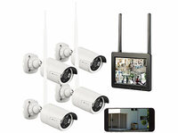 Überwachung leichtgemacht dank Monitor und App VisorTech Funk-Überwachungsset DSC-765.PnP: 7"-LCD-Touchscreen, 4 Full-HD-Kameras, www.pearl.de-Überwacht in Full-HD-Auflösung -Bildübertragung auf kapazitivem LCD-Touchscreen -Fernzugriff…