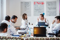 Mitarbeitende entwickeln und testen neue Lösungsansätze für den Pharmadienstleister Mit kreativem Denken Ideen weiter nach vorne bringen: Die Projektteams diskutieren…