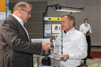 Innovationspreis für Ergonomie an Arbeitsplatzspezialisten verliehen Ralf Eisele (links) überreicht den Innovationspreis Ergonomie 2021 an Andreas Krieg.Anstrengungen für mehr Ergonomie…