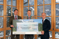 Aufforstung in den bayerischen Alpen stärkt Schutzfunktion des Bergwaldes und schützt vor Naturgefahren Dr. Wrabetz (Helvetia, r.), Dr. Müller (Staatsforsten,…