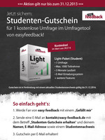 Das Umfragetool easy feedback bietet bis zum 31.12.2013 einen Gutschein für ein Umfragepaket exklusiv für Studenten an. easy feedback StudentengutscheinDer…