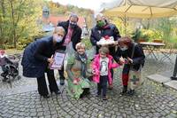 Saalfelds Bürgermeister Dr. Steffen Kania und die Geschäftsführerin der Saalfelder Feengrotten und Tourismus GmbH, Yvonne Wagner, empfingen Familie Feuerlein-Kühl aus Walsdorf bei Bamberg, die mit ihrer vierjährigen Enkelin Ella die Herbstferien für einen Besuch der Erlebniswelt Feengrotten nutzte. Die Jubiläumsgäste freuten sich über eine Urkunde und einen Präsentkorb mit regionalen Spezialitäten.