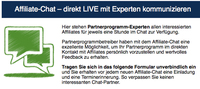 Ein Dienst der Informationsplattform 100partnerprogramme.de führt Affiliates und Betreiber von Partnerprogrammen auf persönlicher Ebene zusammen. Im Experten-Chat werden dabei regelmäßig attraktive Partnerprogramme vorgestellt und brennende Fragen der Affiliates beantwortet. Die Plattform bietet zudem einen