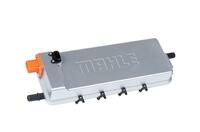 Mit Spannungsniveaus von bis zu 800 Volt können Elektro-fahrzeuge den Strom für den Betrieb von Niedervoltkomponenten, wie Scheinwerfern, Gebläsen, Fensterhebern oder Wischwasserpumpen, nicht einfach der Fahrbatterie entnehmen. An die Stelle des Generators tritt dann ein sogenannter DC/DC-Konverter oder Gleichspannungswandler, der den Strom aus der Fahrbatterie auf das gewünschte Spannungsniveau bringt. MAHLE stellt für OE-Anwendungen bereits heute DC/DC-Konverter her, die das Hoch- und Niederspannungsbordnetz sicher und zuverlässig trennen. Sie sind flexibel in Bezug auf Bauraum und Design und sind zudem gegen Unter-/Überspannung, Überstrom und Überhitzung abgesichert.