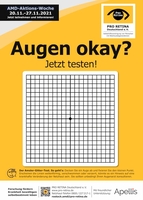 PRO RETINA Deutschland e.V. ist die größte und älteste Selbsthilfevereinigung von Menschen mit Netzhautdegenerationen.[10] Um für das Thema AMD öffentlich Aufmerksamkeit zu schaffen, veranstaltet PRO RETINA vom 20. bis 27. November 2021 die „AMD-Woche“. Ziel ist es, die Bevölkerung über die Erkrankung AMD aufzuklären und insbesondere auf die frühen Symptome einer möglichen AMD hinzuweisen, die Patienten selbst feststellen können. Zu diesem Zweck wird in der Awareness-Kampagne das Amsler-Grid z.B. auf Plakaten an prominenten öffentlichen Stellen angebracht. Flankiert werden diese Maßnahmen von diversen Informationsveranstaltungen. „Wir bei PRO RETINA sind sehr froh, mit unserer Aktion die Aufmerksamkeit für das wichtige Thema AMD in der Öffentlichkeit erhöhen und so Betroffenen früher helfen zu können“, kommentiert Dario Madani, Vorstandsvorsitzender von PRO RETINA, den Start der Awareness-Kampagne. „PRO RETINA fungiert als Bindeglied zwischen Betroffenen, Medizin und Forschung, um im Bereich der AMD innovative Therapien zu entwickeln und so gemeinsam das Ziel zu erreichen, das Augenlicht betroffener Patienten bestmöglich zu bewahren“, so Madani weiter.