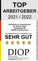 Die Praxis „Zahnärzte im Fasanenpark“ von Dr. Rainer Voigt aus Unterhaching hat es geschafft und das Arbeitgebersiegel Top Arbeitgeber mit der Bewertung sehr gut vom DIQP (Deutsches Institut für Qualitätsstandards und -prüfung e.V.) erhalten. Vorausgegangen war eine anonyme Mitarbeiterbefragung welche zum Ende 2020 in der Praxis „Zahnärzte im Fasanenpark“ durchgeführt wurde. Darin wurden die Beschäftigten unter anderem nach ihrer Gesamtzufriedenheit und der Weiterempfehlung der Praxis „Zahnärzte im Fasanenpark“ als Arbeitgeber gefragt. Außerdem wurden die Leistungen des Unternehmens abgefragt und bewertet. Dazu gehören unter anderem verschiedene Zusatzleistungen, welche die Praxis „Zahnärzte im Fasanenpark“ seinen Beschäftigten anbietet um ein Arbeitgebersiegel als Top Arbeitgeber (DIQP) zu erlangen.