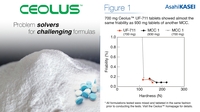 Beschwerdefreies Schlucken von Tabletten oder Kapseln ist für kleine Kinder, ältere Menschen oder Patienten mit Schluckbeschwerden eine Herausforderung. Diese wachsende Patientengruppe erwartet daher praktische und einfache Darreichungsformen. Die hohe Kompaktheit von Ceolus™ UF-711 ermöglicht es, mit einer geringeren Menge MCC eine ausreichende Härte zu erzielen und so die Tablettengröße im Vergleich zu Tabletten mit herkömmlichen MCC-Typen um bis zu 30 % zu reduzieren (Abbildung 1).