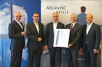 Bildunterschrift: Zertifikatsübergabe, v.l.n.r. Markus F. Weidner (Qnigge® Akademie), Michael Stüring (Qualitätsmanager), Markus Griesenbeck (Geschäftsführer ATLANTIC Hotels), Götz Blechschmidt (DQS), Urlich Ponty (Director Sales & Marketing)
