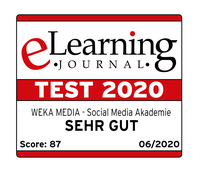 Mannheim/Kissing, 10. September 2020 – Der Weiterbildungsehrgang „Online Marketing Manager“ der Social Media Akademie (SMA) von WEKA MEDIA wurde vom eLearning Journal mit der Note „sehr gut“ ausgezeichnet. Besonders punkten konnten das praxisorientierte didaktische Konzept, die gute technische Umsetzung sowie das durchdachte Betreuungskonzept des Lehrgangs.