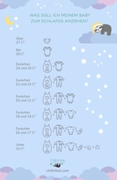 Martina Sturainer de Cueto, Gründerin der Babymoden-Marke Chill n Feel (https://chillnfeel.com/), ist selbst Mama von drei Jungs und weiß, welche Kleidung für Babys in heißen Sommernächten ideal ist. Die von ihr entwickelten Checklisten dienen als wertvolle Orientierung für jede Temperatur; und zwar immer dann, wenn es um die Frage geht: Wie ist mein Baby nachts richtig angezogen?