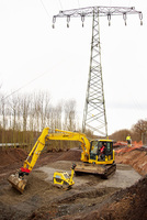 Bagger, Pumpen und Verdichter halfen bei der Erneuerung der Fundamente und dem Entfernen der alten Strommasten: Kettenbagger von 14 bis 21 Tonnen übernahmen die groben Erdbewegungsarbeiten, Tauchpumpen entzogen dem Boden Sickerwasser und sorgten so für einen stabilen Grund. Abschließend verdichteten Rüttelplatten bis 700 Kilogramm den Erdboden und sicherten ihn für die neuen Strommasten.