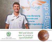 70 Prozent der handgenähten Fußbälle weltweit werden in der pakistanischen Region Sialkot hergestellt. Die zur Versteigerung bereitgestellten Lederbälle sind nicht nur qualitativ hochwertig, sie sind nach dem bei der WM 1954 verwendeten Modell gefertigt. Adi Dassler hatte diesen Ball für die Weltmeisterschaft in der Schweiz entworfen. „Ganz Deutschland brennt auf das Champions League Finale am 25. Mai. Was liegt also näher, als vor diesem Spiel ein paar hochwertige Bälle für den sozialen Zweck zu versteigern?“, erklärt Thomas Müller die Unterstützung durch Young Wings.