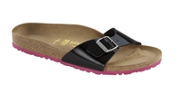 Für die warmen Tage in 2014 verändert BIRKENSTOCK die Farbe der flexiblen Laufsohle der Schuhe. In Pink, Rot, Lila, Hellblau und Gelb bildet sie einen ausgefallenen Kontrast zur Korksohle und dem Obermaterial in Schwarz, Weiß, Rot, Blau, Gelb, Grün, Purple und Orange. Dabei stehen hochglänzender Lack oder Birko-Flor für einen starken Auftritt mit der Sandale zur Auswahl.
