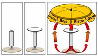 Zusätzlich können diese Tische durch einen wetterfesten Schirm über dem Tisch überspannt sein. Dieser Schirm weist an der Unterseite eine spezielle Beschichtung auf, die die aufsteigende Luftströmung reflektiert und so für eine optimale Luftzirkulation sorgt.