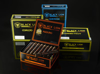 Viel Schwarz dominiert die Cigarrenkisten der Black Lion-Serie – die perfekte (Nicht-)Farbe für den markanten Auftritt der vier verschiedenen Deckblattvarianten, die ihrerseits durch die dominante Schriftfarbe einen Kontrapunkt setzen. Und spätestens beim Öffnen der Schatulle und dem Blick auf die aufsehenerregenden Bauchbinden wird klar: hier brüllt der Löwe!