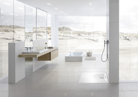 Duschen auf edlem Stahl/Email jetzt noch bequemer: Wandseitige Entwässerung sorgt für durchgängige Standfläche