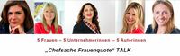 Für Unternehmerinnen, Unternehmer, Angestellte und Interessenten lädt Keynote Speaker und Unternehmerin Liss Heller am 24.November 2016 zur Buchpräsentation von „Chefsache Frauenquote“ mit anschließender Talkrunde. Gäste können so mit den Autorinnen Regina Kmenta & Verena Linhart, Gabriele Fähndrich und Liss Heller mitdiskutieren. Moderiert wird der Abend von Keynote Speaker und Trainerin Karola Sakotnik. Im Anschluss findet eine Signierstunde statt.