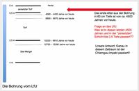 Und genau hier liegt die eklatante Verfälschung durch die Geologen des Landesamtes, die in der Presseerklärung von Dr. Eichorn verkündet und von den Medien übernommen wurde sowie von den selbsternannten „Experten“ und Gegnern des Impaktes bis heute immer wieder nachgeplappert wird: Der Befund der Bohrung sagt nichts anderes, als dass sie überhaupt erst ca. 2000 (!) Jahre VOR dem Impakt das erste Alter mit 4500 Jahren vor heute liefert (Abb. 3).