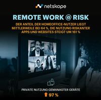 Die Grenzen zwischen der privaten und beruflichen Nutzung von gemanagten Geräten verschwimmen immer mehr: Im letzten halben Jahr hat sich als Folge der COVID-19-Pandemie die private Nutzung dieser Geräte verdoppelt. Dabei werden sie offensichtlich auch mit anderen geteilt und beispielsweise zum Homeschooling eingesetzt – mit potenziell gravierenden Folgen für die Sicherheit. Zu diesem Ergebnis kommt der neue Cloud and Threat Report des Cloud-Security-Spezialisten Netskope, in dem die wesentlichen Trends des ersten Halbjahrs 2020 zur Nutzung von Cloud-Diensten und -Apps in Unternehmen sowie zu Web- und Cloud-basierten Bedrohungen analysiert werden. Neben dem offensichtlichen Trend zum Homeoffice (Steigerung um 148 %) zeigt der Bericht auf der Grundlage anonymisierter Daten von Millionen von Benutzern weltweit auch, dass Angreifer weiterhin stark auf die Cloud als Angriffsvektor setzen.