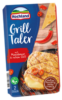 Heimenkirch, 01.03.2017 – Platz da, Bratwurst und Schweinenackensteak, in dieser Grillsaison geht es rund! Pünktlich mit den ersten warmen Sonnenstrahlen sorgt Hochland mit seinen neuen Grill Talern in zwei schmackhaften Varianten für Abwechslung auf dem Rost und inspiriert eingefleischte Grillfans wie auch Vegetarier, Flexitarier & Co. zu neuen Kreationen. Die Käsekomposition mit mildem Maasdamer präsentiert sich in Form leckerer Taler mit knuspriger Hülle und cremigem, zartschmelzendem Kern für außergewöhnlichen Genuss.