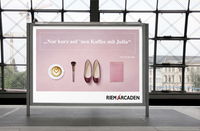 Neben drei Imagemotiven und insgesamt 15 Anlass- und Aktionsmotiven hat das kreative Team auch Formadaptionen für sämtliche Media Outlets konzipiert. Die Visuals vermitteln das vielfältige Shopping-Angebot und dass es immer einen guten Grund gibt, um „mal eben kurz“ in die Riem Arcaden zu gehen. So werden der schnelle Kaffee, kundenorientierte Services oder das verlockende Treueprogramm sympathisch mit dem großen Sortiment an trendigen Produkten verknüpft. Im Fokus der Launch-Kampagne steht die plakative Bildsprache, die einen hohen Wiedererkennungswert auf allen Kanälen sicherstellt. Zum Einsatz kommt diese nicht nur online in Ads und Social Media sondern auch in Print und Out of Home.