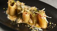 > PACCHERI MIT PIAVE DOP KÄSE, SALSICCIA (ROHWURST) UND PISTAZIEN AUS BRONTE
