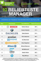 In der Liste der beliebtesten Manager 2015 aus der Sicht deutscher Mitarbeiter sind Geschäftsführer aus sehr unterschiedlichen Branchen vertreten, darunter unter anderem die Fertigungs- und Automobilindustrie, Softwareentwicklung, Versicherungen sowie Sportartikelhersteller. Die Top 5 belegen in dieser Reihenfolge: Volkmar Denner von Bosch (mit einer Befürwortungsrate von 92 %). Norbert Reithofer(1) von BMW (91 %), Dieter Zetsche von Daimler (87 %), Pierre Nanterme von Accenture (86 %) und Kai Wawrzinek von Goodgame Studios (86 %).