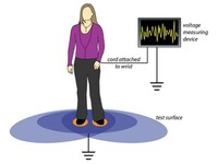 An einigen Orten, wie z. B. in Lagern und Produktionsbereichen, werden leitfähige Schuhe oder Erdungsschuhe verwendet, um mit beiden Füßen den Kontakt zum Boden oder Teppich zu gewährleisten. Dieses Schuhwerk funktioniert nicht ordnungsgemäß, wenn es auf isolierenden Oberflächen verwendet wird.