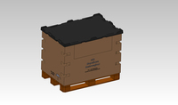 Die Mehrwegbox K 01 aus (Karton 3 wellig ), 1200x800x800mm mit speziell geformten PE Deckel bildet eine geschlossene Einheit und dadurch eine sichere Aufnahme für das nächste Stapelgut, z.B. Europalette oder Gitterbox.