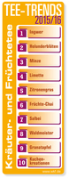Ingwer, schon fast ein Evergreen in der Kräuter- und Früchtetee-Tasse, ist weiterhin stark gefragt und führt die Trendliste an. Auf Platz zwei folgen Holunderblüten, die im Cocktail Hugo schon Furore machten und nun in der Tasse mit Limette auf Erfolgskurs gehen. Aber auch naturbelassene Kräuter- und Früchtetees mit bekannten Kräutern wie Salbei, Verbene und Zitronenmyrte werden im Kräuter- und Früchtetee-Regal verstärkt zu finden sein.
