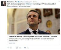 Während der Präsidentschaftswahlen in Frankreich wurde Emmanuel Macron Opfer mehrerer solcher Kampagnen. Eine Seite, die sich als belgische Zeitung Le Soir ausgab, veröffentlichte zum Beispiel einen Bericht über die mutmaßliche Wahlkampfunterstützung Macrons durch Saudia Arabien (siehe Bild unten). Die gefälschte Nachricht nannte als angebliche Quelle die Nachrichtenagentur Agence France-Presse und erschien unter dem Domainnamen lesoir[.]info – eine Abwandlung der legitimen Seite lesoir[.]be.