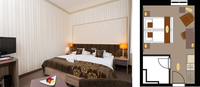 Jedes der Doppelzimmer im Hotel Dorotheenhof misst 21 qm und beeindruckt durch seine geschmackvolle Einrichtung und ein hohes Angebot an Komfort. Gedeckte warme Farben bestimmen das Ambiente, die Zimmer in der zweiten Etage haben zudem eine leichte Dachschräge, die dem Zimmer einen gemütlichen Charakter verleiht. Die Betten sind mit einer durchgehenden Matratze ausgestattet und haben zusätzlich zu den Nachttischlampen auch eine indirekte Beleuchtung.