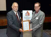 Anlässlich des vierten Symposium on Structural Durability in Darmstadt SoSDiD über-reichte Dr. Karl-Heinz Haase (li.), Product and Application Manager Optical Technology & Asset Monitoring bei HBM Hottinger Baldwin Messtechnik GmbH, den HBM-Award an Dr. Halvar Schmidt, Wissenschaftler am Fraunhofer-Institut für Betriebsfestigkeit und Systemzuverlässigkeit LBF.