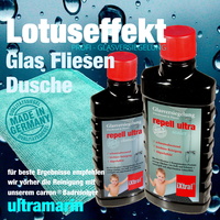 An Glas und Fliesen in der Dusche bleibt schnell Kalk und Schmutz haften. Abhilfe schafft das Profi-Set zur Grundreinigung und Glasversiegelung mit Lotuseffekt für Dusche, Duschwände und Duschkabine. iXtral ® repell ultra ist ein abgestimmtes 2-Komponenten-System bestehend aus einem Spezialreiniger für die Reinigung von Kalk und Schmutz sowie der Lotuseffekt-Versiegelung speziell für Glasflächen und Fliesen. Das Dusche Reinigen wird damit vereinfacht.