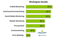 Für die Studie befragte das Beratungsunternehmen absolit 238 Online-Marketing-Verantwortliche mittlerer und großer Unternehmen. Ausgewertet wurden die Branchen Handel, Tourismus, Banken & Versicherungen, Markenhersteller, Krankenkassen & Pharmaunternehmen, Verlage sowie B2B-Unternehmen. Eine Kurzversion der Studie kann unter www.absolit.de/Trends kostenfrei heruntergeladen werden.