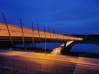 Die Beleuchtung wurde an nur einer Brüstungsseite realisiert. Das im Handlauf installierte, durchgehende Lichtband verbessert die Ausleuchtung der Gehfläche und verhindert gleichzeitig eine Blendung des darunter fahrenden Verkehrs. Die lineare Lichtverteilung sorgt für mehr Sicherheit und dient gleichzeitig der Unfallprävention. Die Abdeckung des Lichtbandes ist so zuverlässig befestigt, dass sie weder mutwillig zerstört werden kann, noch Insekten eindringen lässt. Auch ein versehentliches Berühren der mit Niederspannung betriebenen elektrischen Anlage ist nicht möglich, so dass die Sicherheit aller Nutzer gewährleistet ist.
