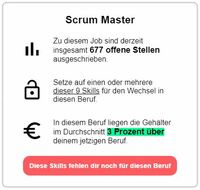 Wer einen Berufswechsel anstrebt, kann sich durch die Angabe seiner aktuellen Skills auslesen lassen, welche anderen Berufe das jetzige Skillset nachfragen. Somit wird dem Nutzer eine Auswahl an Berufen inklusive Gehaltsabschätzung präsentiert, die eine starke Entscheidungsgrundlage für Berufswechsel bietet.