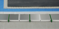 Verlegt wird das selbstregulierende Heizband in ein mit Wärmeleitblechen aus Aluminium kaschiertes EPS-Dämmelement. Zur Aufnahme des Heizbandes sind die Elemente mit passgenauen Kanälen im Raster von 150 mm ausgestattet. Über die ebenfalls aus EPS bestehenden Umlenkelemente lässt sich das Heizband sicher um 180° umlenken. Zudem stehen Randausbauelemente zur Verfügung, um Restflächen im Bodenbereich auszulegen.