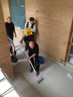 Nachdem die geschulten Handwerker den alten Bodenaufbau mit Ziegelsteindecken, teerhaltiger Abdichtung und begehbarem Beton entfernt und die Wärmedämmung aufgebracht hatten, haben sie das Abdichtungssystem Triflex BTS-P verarbeitet. Für die Grundierung der Fläche kam Triflex Cryl Primer 276 zum Einsatz. Details wie Fenster-, Tür- und Pfeileranschlüsse wurden mit Triflex ProDetail homogen in das flüssig verarbeitete Harz eingebunden. Die Flächenabdichtung erfolgte mit vliesarmiertem Triflex ProTerra. Eine Schutz- und Verschleißschicht erzielten die Handwerker mit Triflex ProFloor RS 2K, einer langlebigen Beschichtung, die wasserdicht und UV-beständig ist. Um die chemische und mechanische Widerstandsfähigkeit der Laubengänge zu erhöhen, wurde die Oberfläche mit Triflex Cryl Finish 205 (Farbton Kieselgrau) versiegelt und mit Triflex Micro Chips abgestreut.