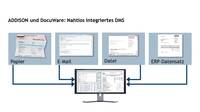 Das Dokumentenmanagement-System DocuWare ist nahtlos in die ADDISON-Anwendungen integriert, die DMS-Funktionen stehen durchgängig innerhalb der ADDISON-Umgebung zur Verfügung. Unabhängig von Format und Quelle vereinfacht und beschleunigt das Dokumentenmanagement-System Geschäftsprozesse und Arbeitsabläufe, indem es Dokumente – Papierunterlagen und elektronische Daten, zum Beispiel Belege, Briefe, Zeichnungen, Dateien und E-Mails – elektronisch verwaltet, verlinkt und archiviert. Nur ein einziger Suchvorgang und alle zu einem Projekt oder einer Person zugehörigen Dokumente sind sofort verfügbar – an jedem Ort und zu jeder Zeit. In Kombination mit dem ADDISON-Modul Scannen-Buchen-Archivieren wird die Buchung und Archivierung von Geschäftsbelegen wie z. B. Eingangsrechnungen automatisiert.