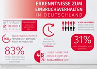 Wie oben erwähnt, gaben zwei Drittel der 500 in Deutschland Befragten an, dass bei ihnen während kurzer Abwesenheit (unter 10 Minuten) eingebrochen wurde. 75 Prozent der Betroffenen hatten den Eindruck, dass sie vorher beobachtet worden waren. Bei dem Großteil der Betroffenen wurde nicht nur das Wohnzimmer, sondern mit dem Schlafzimmer auch der privateste Bereich nach Wertgegenständen durchsucht. Mit 23 Prozent waren rund ein Viertel der Betroffenen während des Einbruchs zuhause anwesend. In 31 Prozent dieser Fälle waren der/die Einbrechenden bewaffnet.
