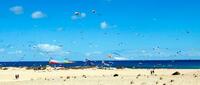 Fuerteventura/München, Oktober 2016: Fuerteventura ist bekannt für sein ganzjährig sonniges Klima, weiße Sandstrände und kristallklares Meerwasser und bietet perfekte Wetterbedingungen für das Internationale Drachenfestival, das jeden November in Playa del Burro, in den Dünen des Corralejo Naturparks stattfindet.