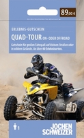 Der Erlebnis-Gutschein ist exklusiv für 89,- Euro bei Tchibo erhältlich – ein Preisvorteil von 10 Euro zu den vergleichbaren Quad-Erlebnissen auf www.jochen-schweizer.de. Der Erlebnis-Gutschein ist speziell auf die Bedürfnisse des Einzelhandels zugeschnitten und soll zu Impulskäufen animieren. Zwei sonst nur getrennt erhältliche Erlebnisse – die Quad Onroad Tour und die Quad Offroad Tour – werden zu einem Gutschein zusammengefasst. Der Kunde hat so die Wahl zwischen rund drei Stunden Fahrspaß auf kleinen Straßen oder im wilden Gelände – an über 40 verschiedenen Erlebnisorten, gültig für eine Person.