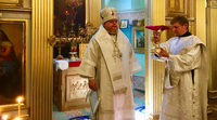 Das Erzbischof Tichon nun die Potsdamer Gemeinde besuchte und die Heilige Messe abhielt, wurde von den Gläubigen mit besonderer Freude, Liedern und dem gemeinsamen Segen von Erzbischof Tichon Zajcev und Erzpriester Anatolij Koljada gefeiert.